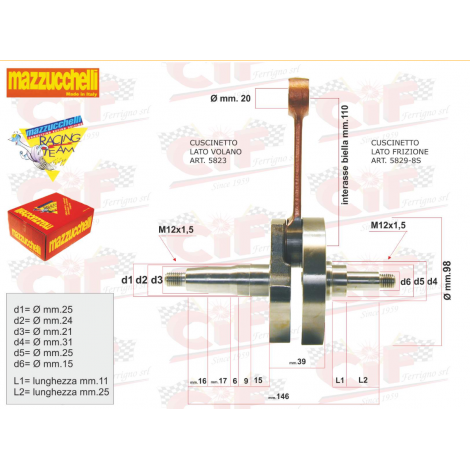| CRANKSHAFT - ORIGINAL MODEL (MAZZUCCHELLI) (SIM/OEM 123298-112205) SOLO PER / ONLY FOR : VESPA RALLY 180 cc. (VSD1T) |