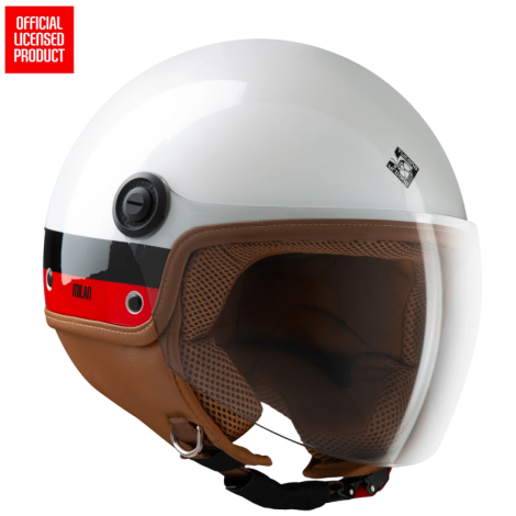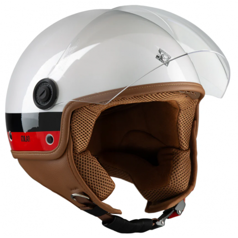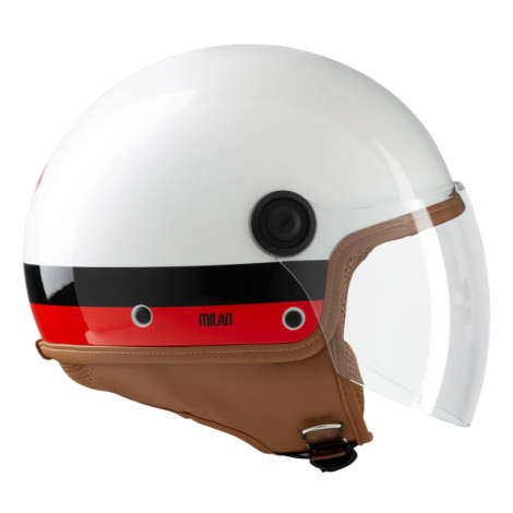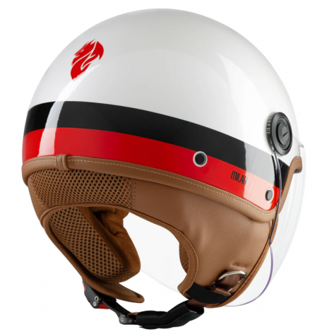 Casco moto demi-jet in policarbonato, a doppia calotta, omologato ECE 22.06, con grafica personalizzata AC Milan.