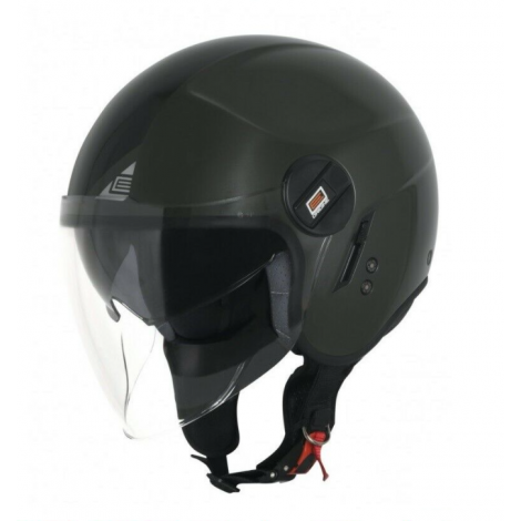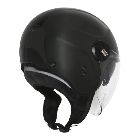 Alpha, un casco demi jet in stile più classico con una visiera lunga resistente ai graffi al di fuori e all’interno una visiera solare, interni con materiali eleganti.