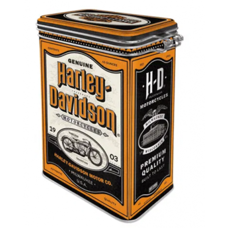 Scatola "L" con chiusura ermetica 7,5 x 11 x h 17,5 cm, Harley Davidson - Genuine Motorcycles Milwaukee, capacità di 1,3 litri, resistente all'uso, rivestimento protettivo della vernice, certificata per uso alimentar