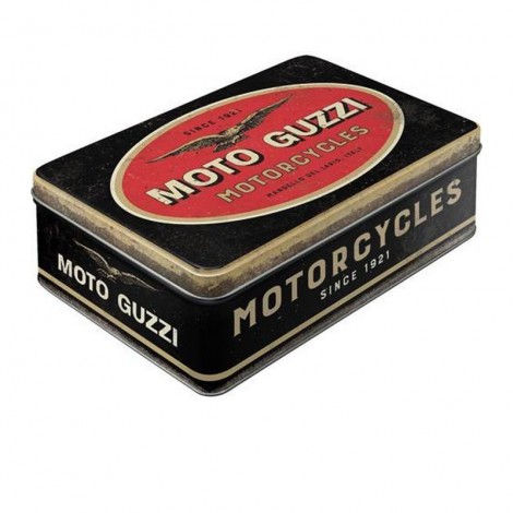 Scatola bassa 23 x 16 x h 7 cm, Moto Guzzi - Logo Motorcycles, capacità di 2,5 litri, coperchio a cerniera, resistente all'uso, rivestimento protettivo della vernice, certificata per uso alimentare.