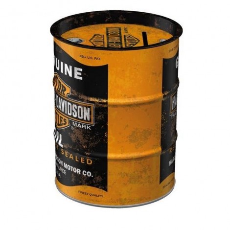 Salvadanaio in metallo - Oil Barrel, 9,3 x 11,7 cm, Harley Davidson - Genuine Oil, capacità 600 ml, resistente all'uso, rivestimento protettivo della vernice.