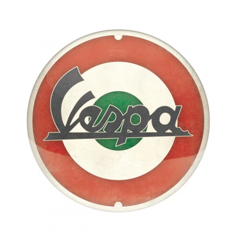 Cartello Rotondo 35 cm Vespa - Logo Italian, in metallo, con 2 fori, lacca protettiva, confezionato in scatola regalo di cartone