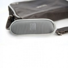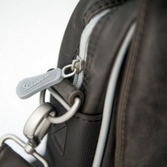 Pratica ed elegante borsa con richiami alla tradizione Vespa come la gomma delle manopole usate lungo il profilo della borsa per protezione e il logo Vespa e la sagoma della Vespa come elementi distintivi. All'interno scomparti e tasche per offrire maggiore praticità.