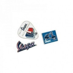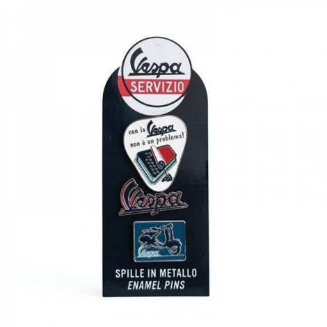 Set di 3 spille in metallo, ispirate alla comunicazione storica Vespa Servizio.