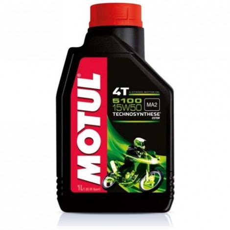 Olio lubrificante MOTUL 5100 Ester 15W50 per motori 4T, garantisce un'eccellente protezione ad alte temperature e grazie all'elevata resistenza del film lubrificante garantisce cambi morbidi e veloci.