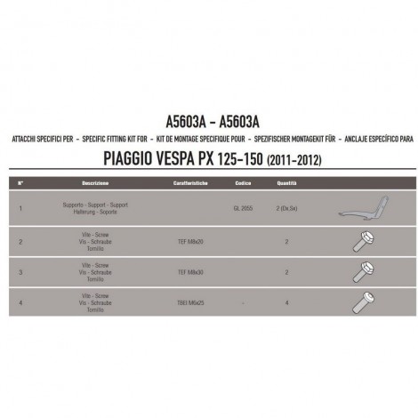 642A Givi Kit attacchi per parabrezza Vespa PX tutti i modelli