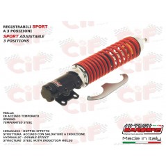 AMMORTIZZATORE ANTERIORE CPL. REGISTRABILE VESPA GT 125-200 ADJUSTABLE FRONT SHOCK ABSORBER (CARBONE COD..6022.003/7A) INFORMAZIONI TECNICHE : IDRAULICO - DOPPIO EFFETTO (FRENATO IN COMPRESSIONE ED ESTENSIONE) STRUTTURA ACCIAIO CON SALDATURE A INDUZIONE - MOLLA: IN ACCIAIO TEMPERATO - REGISTRABILE A 3 POSIZIONI CORPO NERO - MOLLA ROSSA TECNICAL INFORMATIONS: HYDRAULIC - DOUBLE EFFECT (BRAKED IN COMPRESSION AND EXTENSION) STRUCTURE STEEL WITH INDUCTION WELDS - SPRING: TEMPERATED STEEL - 3 POSITIONS ADJUSTMENT BLACK BODY - RED SPRING VESPA GT 125-200-GTV-GTS 125-250-300 FINO AL 2014 E DAL 2017 AL 2018-(TILL TO 2014 AND FROM 2017 TO 2018)-300 SUPER SPORT