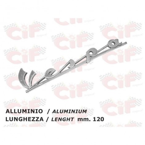 | TARGHETTA "VESPA" TRAFORATA ANTERIORE LUNGHEZZA mm. 120 FRONT PIERSED NAMEPLATE - LENGHT mm. 120 PIAGGIO VESPA 50 SPECIAL (1969-1972) |